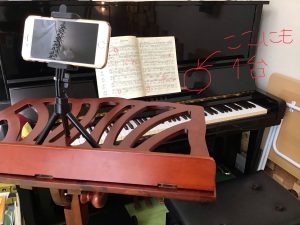 ひとつは鍵盤と手が見える場所、もうひとつは顔を映せるピアノの楽譜の横に置けると良いです。